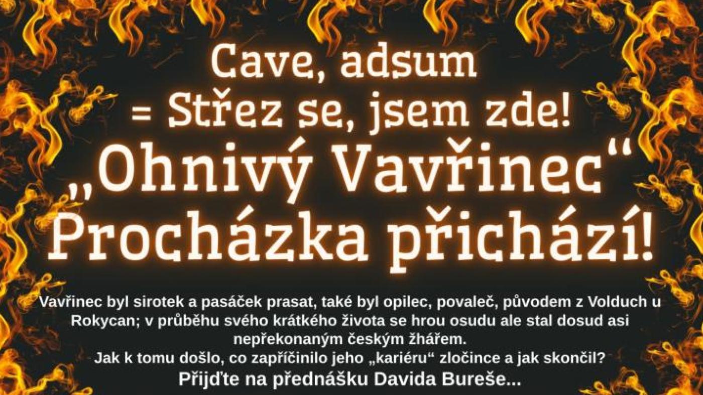 Vavřinec byl sirotek a pasáček prasat, také byl opilec, povaleč, původem z Volduch u Rokycan; v průběhu svého krátkého života se však hrou osudu stal dosud asi nepřekonaným českým žhářem. Jak k tomu došlo, co zapříčinilo jeho „kariéru“ zločince a jak skončil? Přijďte na přednášku Davida Bureše do Zbiroha 8. října v podvečer.