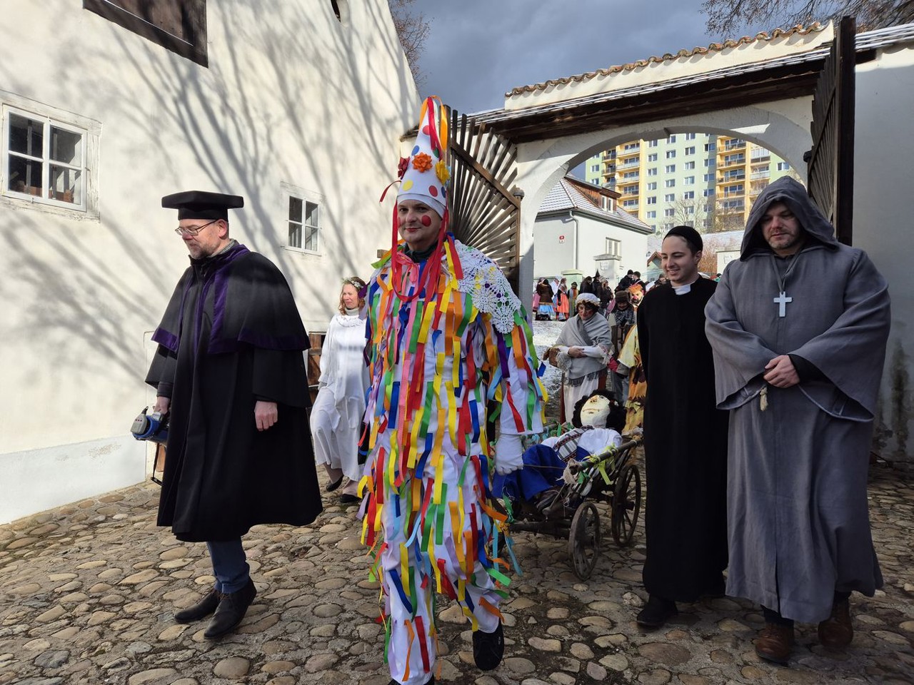 Průvod, v němž nechyběli ženich a nevěsta, smrtka, kat, soudce, medvěd či kominík, se kolem 14. hodiny vrátil na statek U Matoušů a tam program o hodinu později vyvrcholil pohřbem zhýralého Bakuse, kterému kat sťal hlavu a přítomní jej zasypali hnojem. „Symbolicky jsme se tak rozloučili s dobou hodování. Od Popeleční středy nastává období půstu, které trvá až do Velikonoc,“ vysvětlila vedoucí Muzea v přírodě Plzeň-Bolevec Mirka Kubatová Pitrová.