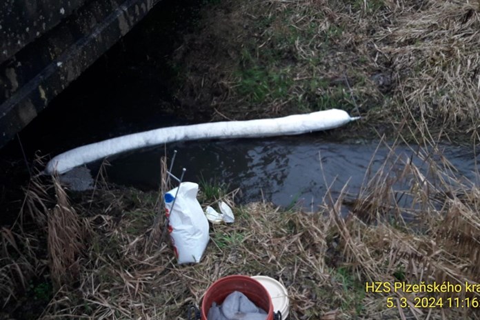 Hasiči vyjížděli na místo před 11. hodinou. "Ve Kdyni u čističky odpadních vod dochází k úniku ropné látky do Zahořanského potoka. Nainstalovali jsme norné stěny a sopční hady," uvedl mluvčí krajských hasičů Petra Poncar.