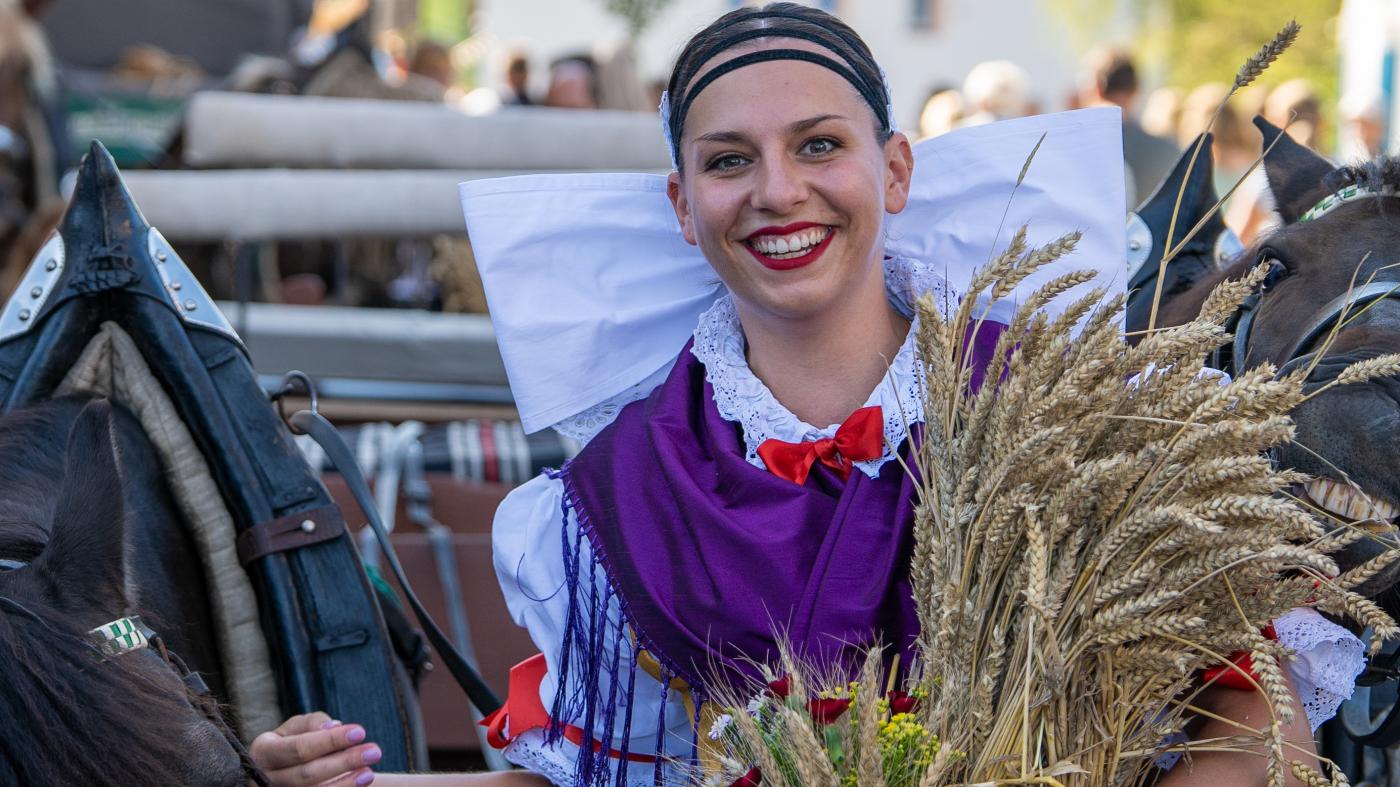 Součástí slavnosti bude tradiční dožínkový průvod, předání věnce a bezplatné prohlídky zámku. Na místě se představí nositel titulu Mistr tradiční rukodělné výroby Václav Reitmeier s ukázkou výroby dřeváků s koženým nártem. Program doplní výstava architektů Miloslava Michalce a Vladimíra Heisera.
