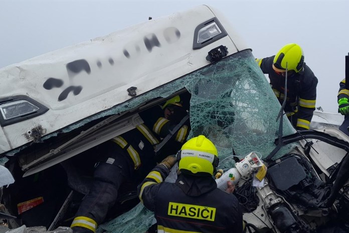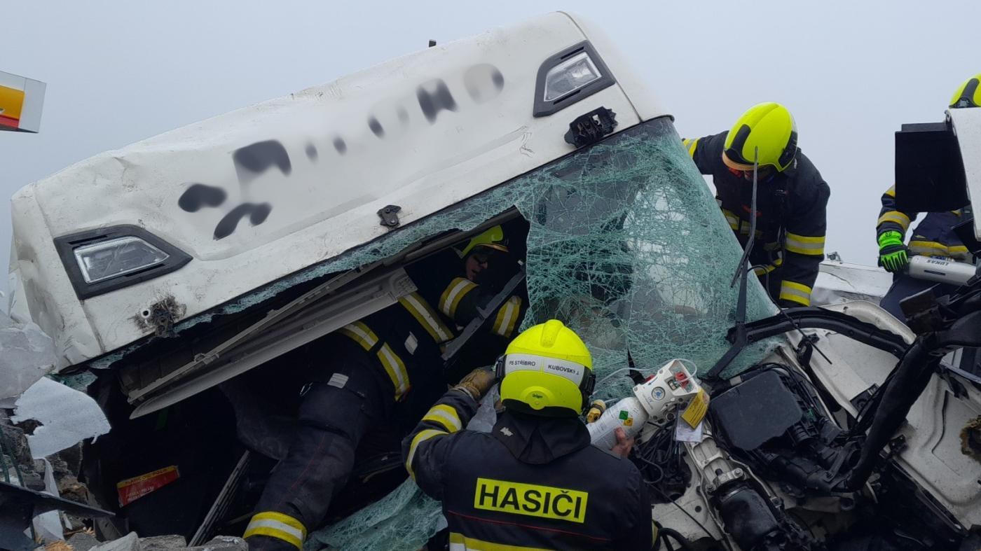 Jednoho člověka z havarovaného kamionu hasiči vyprošťovali. "Po nehodě došlo k menšímu požáru, který uhasila obsluha přenosným hasicím přístrojem. Obsluha stanice použila šest hasicích přístrojů," doplnil postupně Poncar.