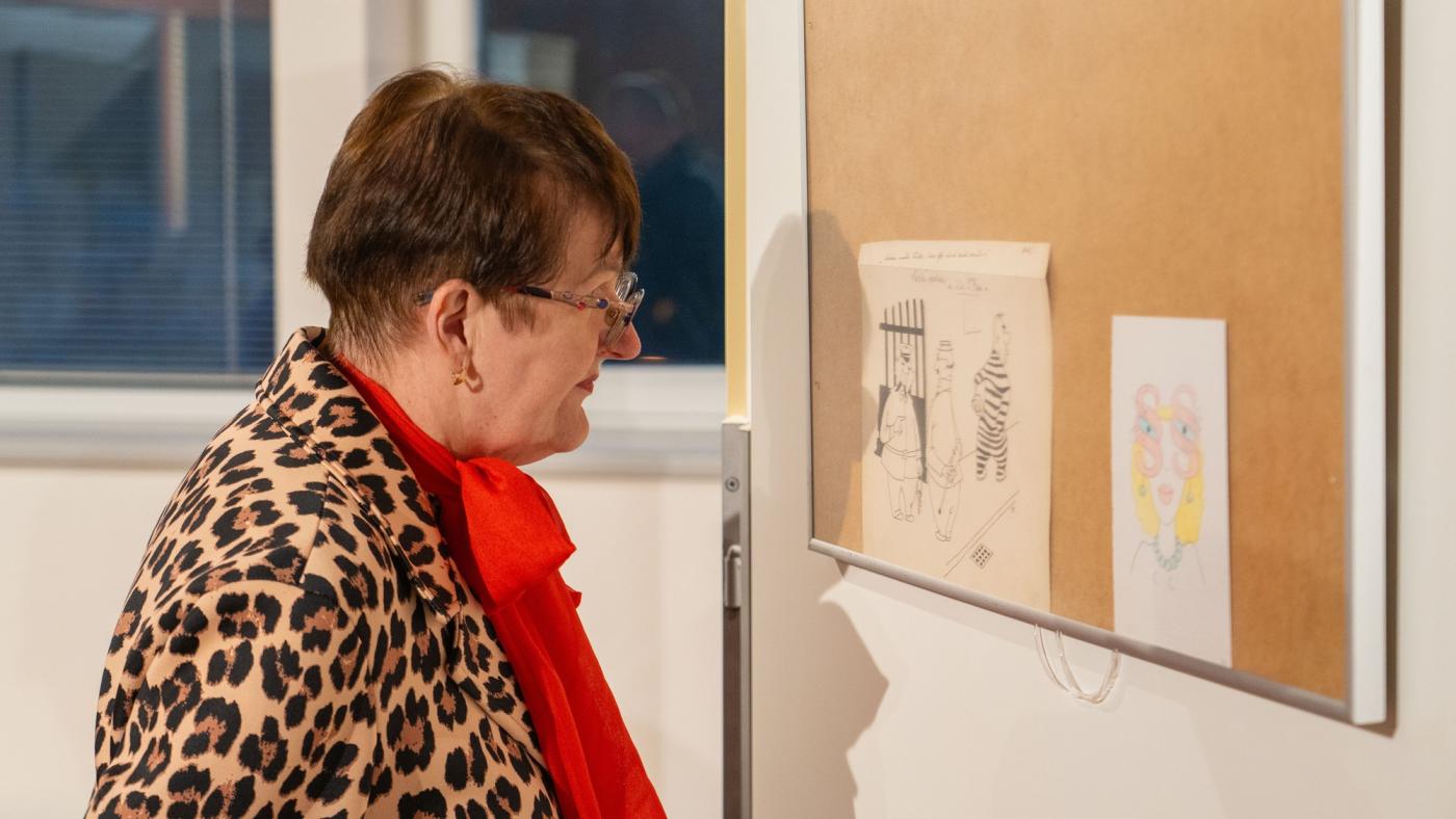 Výstava pochází ze sbírky moderátora Radka Jirgla, který ji osobně představil během vernisáže. Tu navštívil také chodovský uznávaný výtvarník Jiří Jun, jenž si s Radkem Jirglem o vystavených kresbách s chutí popovídal.