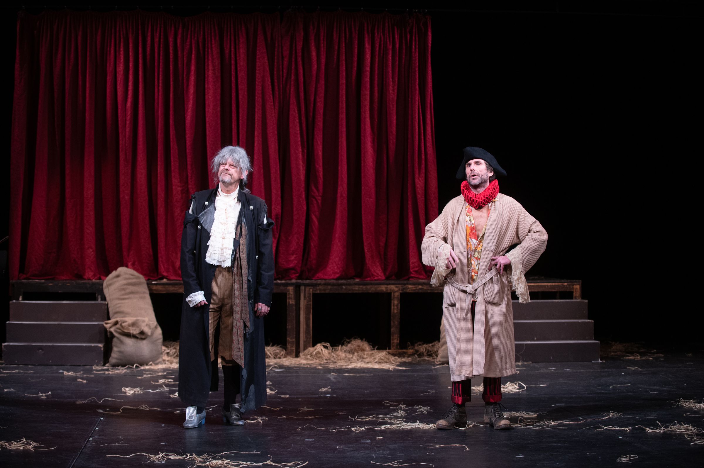Inscenaci s plzeňským činoherním souborem připravil jeho kmenový režisér Adam Doležal. Podle něj hra přirozeně spojuje humor s filozofickým tónem. „Je to road movie bez cíle, vyprávění, které se neustále vrací samo k sobě. Hra se ptá, kam vlastně jdeme – a zda není ‚vpřed‘ úplně všude," prohlásil.
