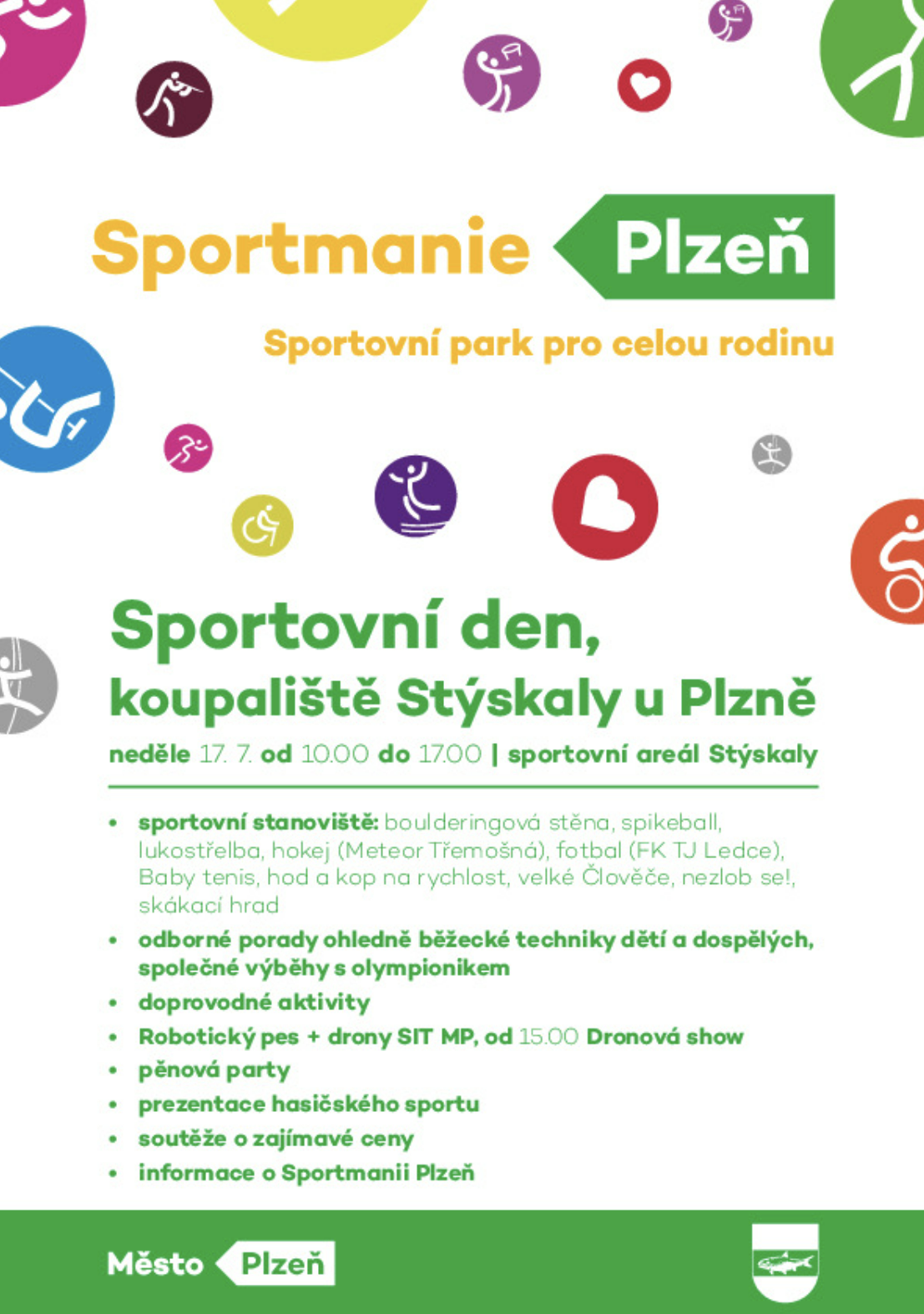 V rámci akce se uskuteční výběhy s olympionikem, představí se drony i robotický pes Správy informačních technologií města Plzně. Děti budou za aktivní sportování odměněny dárky a medailemi, kromě jiného se dozví i podrobnosti ke Sportmanii Plzeň, která bude zahájena v sobotu 20. srpna 2022 ve Škoda sport parku v Plzni na Slovanech.