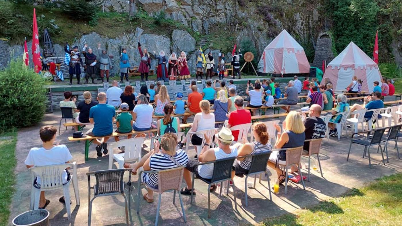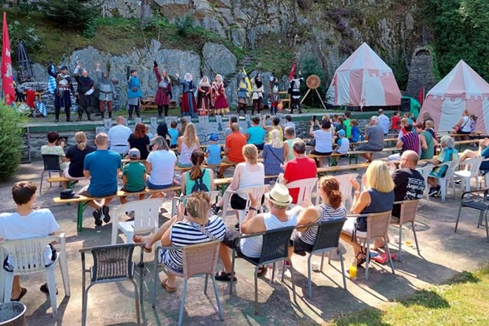 Během odpoledne tak byly vidět souboje, ponožková bitva a další aktivity, do kterých byli zapojeni i návštěvníci. Navzdory horkému letnímu počasí se do divadla přišly podívat řady návštěvníků a děti měly možnost si vyzkoušet a prohlédnout i rytířské vybavení včetně mečů.