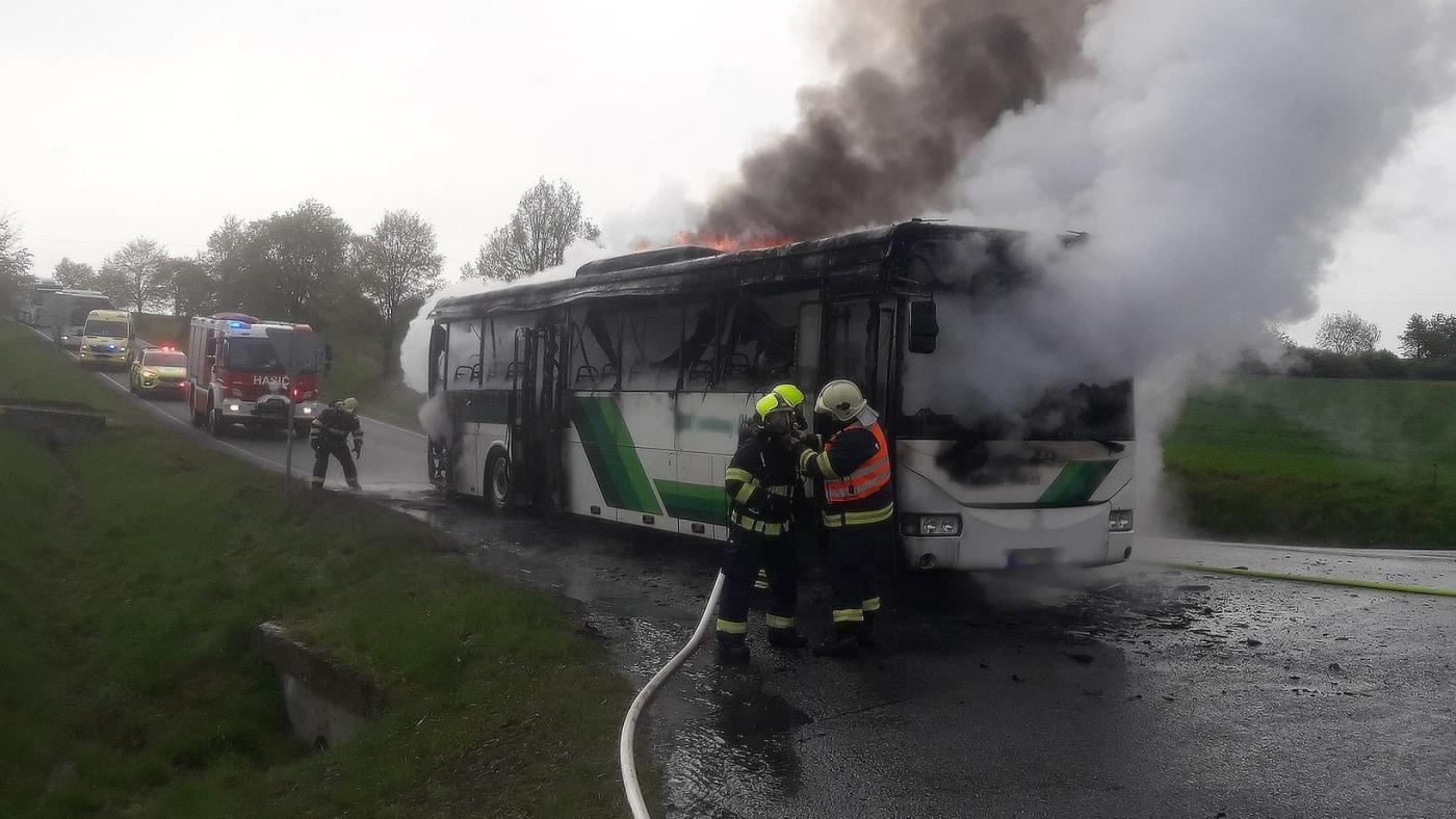Autobus začal hořet před půl 10. "V autobusu cestovalo celkem 44 cestujících, nikdo nebyl zraněn," potvrdila policejní mluvčí Dagmar Brožová.