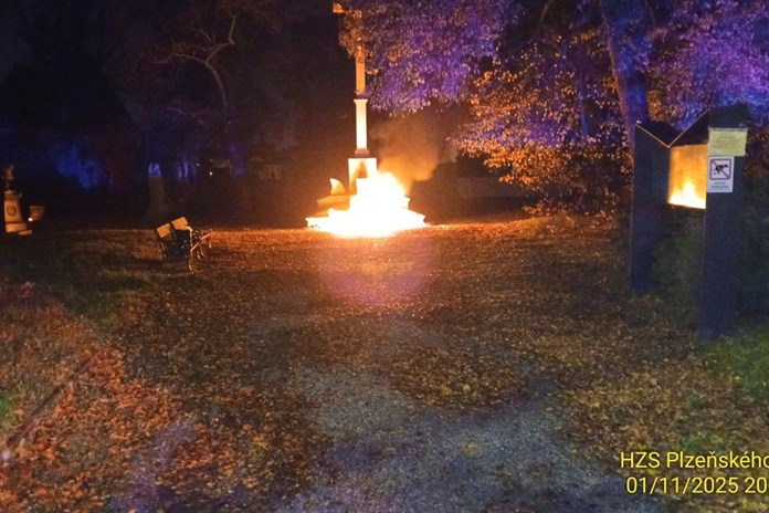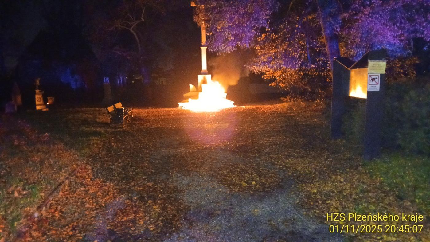 Podle mluvčího krajských hasičů Michala Holečka došlo k požáru na Mikulášském hřbitově v Plzni v sobotu 1. listopadu. "Šlo o požár svíček u centrálního kříže," popsal Holeček.