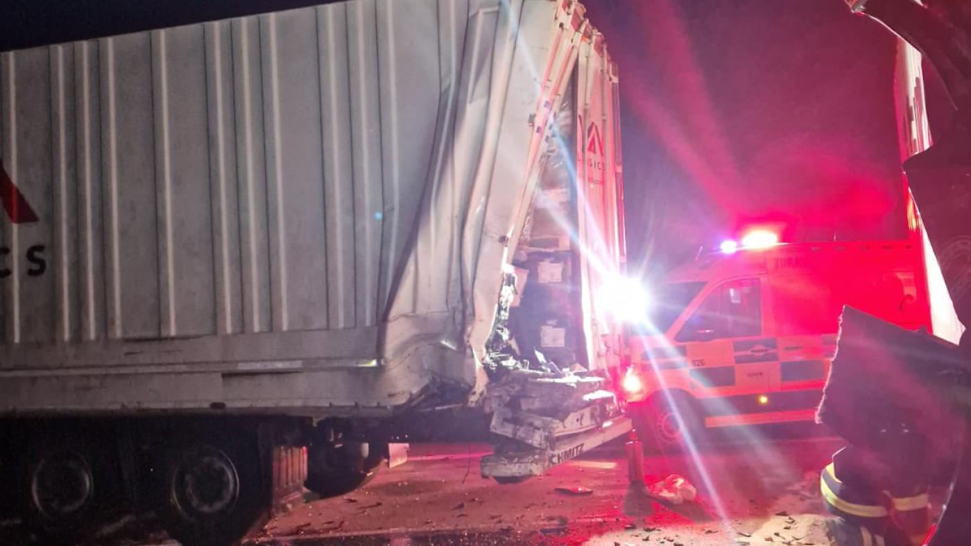 Nehoda se stala na 135. kilometru poté, co řidič jednoho z nákladních vozidel zřejmě narazil do kamionu, který stál v pravém jízdním pruhu.