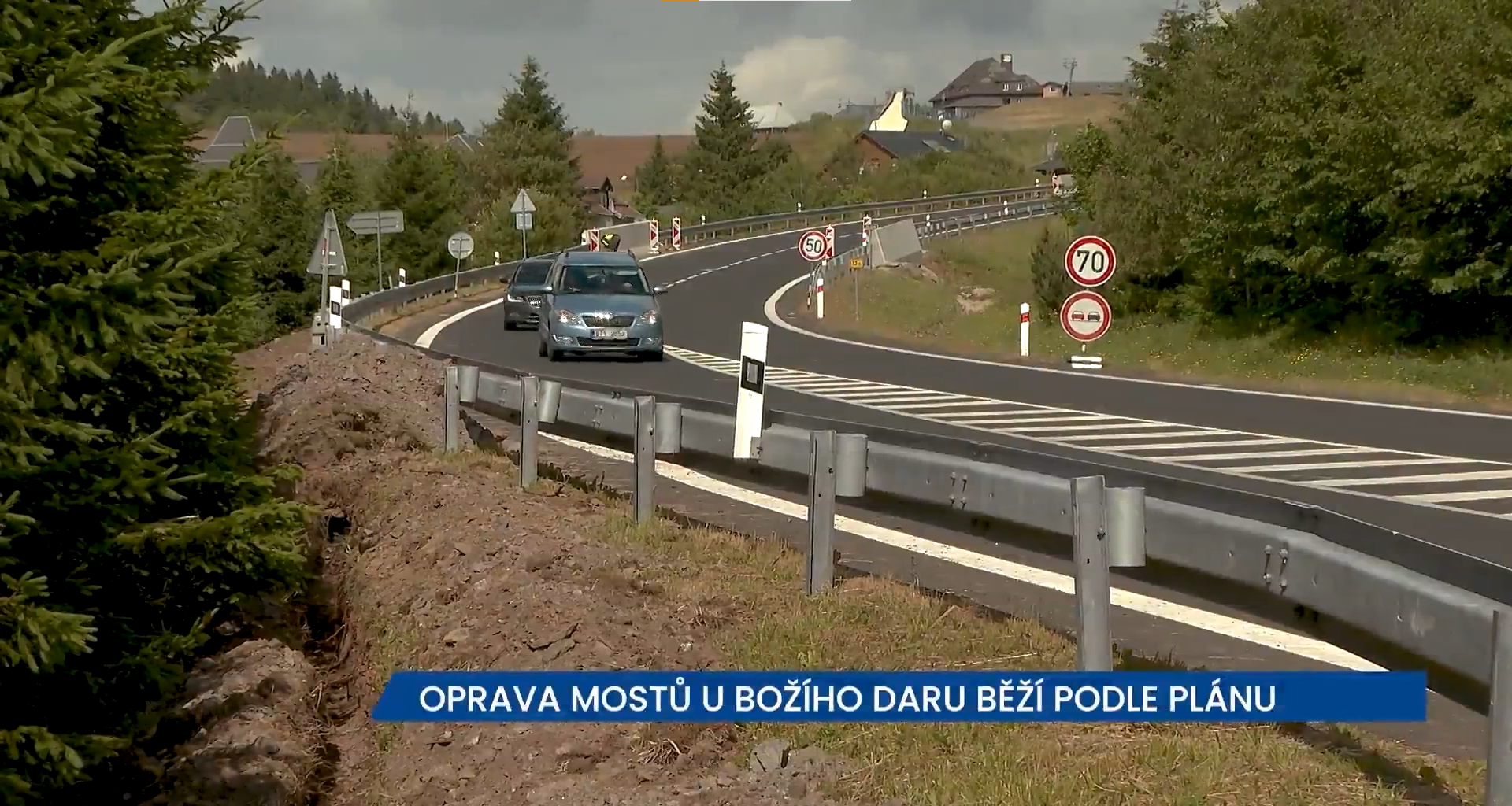 Jiří Baloun, ŘSD Karlovarského kraje: “Na Božím Daru opravujeme v současnosti tři mosty, jedná se spíš o sanaci těch mostů. Dá se říct, že zde opět ty práce probíhají v určitém předstihu, takže jsme oproti harmonogramu pár dní dopředu, měli bychom končit přibližně na přelomu července a srpna, i zde ty práce probíhají zatím podle harmonogramu, bez problémů a nemáme zde zatím žádné komplikace, co se týče dopravy, doprava je zde plynulá.“