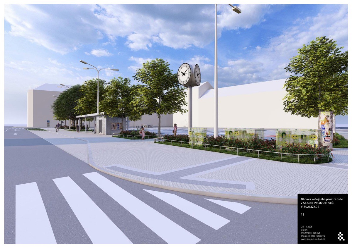 Zmizí rovněž nevzhledné reklamní plochy a místo původních kiosků vyrostou dva nové moderní stánky – trafika s občerstvením. Nový přístřešek získá i zastávka MHD. „Všechny tyto objekty budou mít zelené střechy. Zajímavostí je, že konstrukcí stánku s občerstvením bude prorůstat strom,“ doplnil náměstek s tím, že obměnou projde i mobiliář včetně hodin a parkovací místa pro invalidy se přesunou blíže k zastávce.