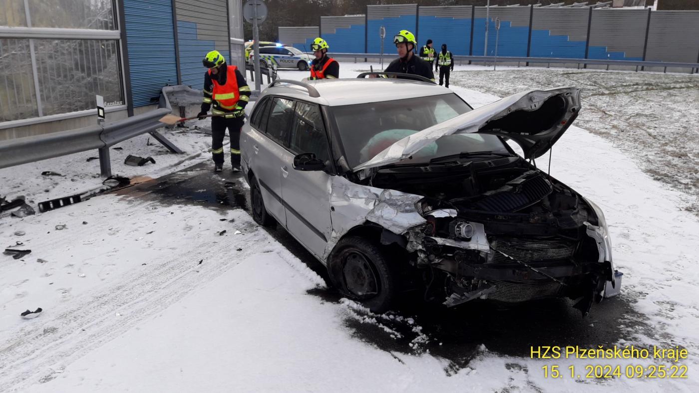 Lehčím zraněním čtyřiadvacetiletého řidiče skončila nehoda osobního vozidla Nové Hospodě na výpadovce na Sulkov ve směru na Plzeň. "Došlo k poškození svodidel. My jsme zajistili místo nehody a provedli posyp uniklých provozních kapalin," uvedl mluvčí krajksých hasičů Petr Poncar. Muž ročník 1999 utrpěl lehčí zranění. "Byl transportován na akutní příjem Fakultní nemocnice Lochotín," upřesnila Svobodová.