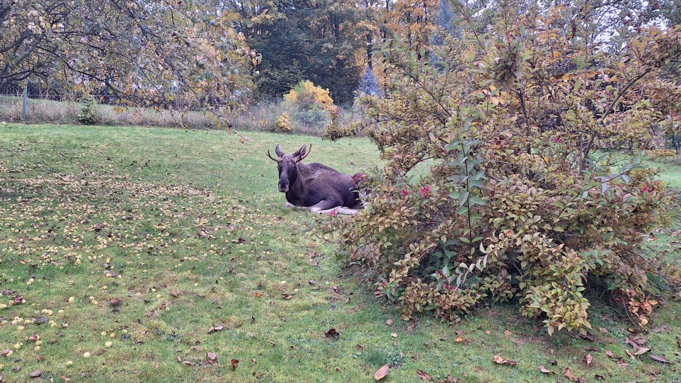 Poté, co policisté z obvodního oddělení Nýrsko přijeli na místo, los ležel spokojeně pod jabloní a pojídal jablka. "Na hlídku zpočátku vůbec nereagoval, ale když se zvedl a policisty zaregistroval, začal se již chovat jako divoké zvíře a kolegy po zahradě trošku prohnal. Pomocí hlasitého tleskání se pak podařilo policistům Emila zahnat k plotu, který přeskočil a vydal se zpět do volné přírody," dodala Burešová s tím, že další kroky Emila vedly hned do lesů.