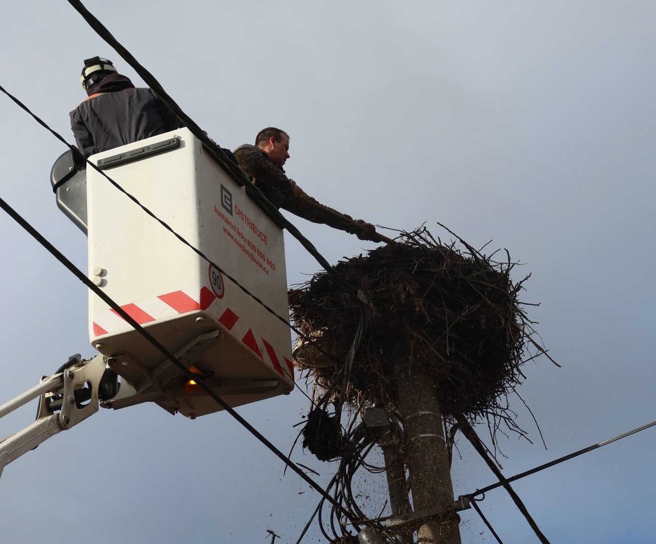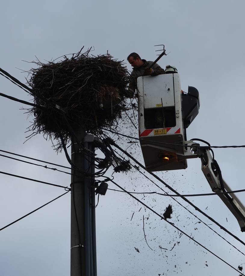 Návrat čápů znamená práci i pro ochranáře. V Polžici u Horšovského Týna museli ornitologové ve spolupráci s energetiky ze Skupiny ČEZ upravit obří hnízdo na sloupu elektrického vedení. Hnízdo, které se skládalo z několika vrstev na sobě, bylo nutné odlehčit, aby neohrozilo stabilitu sloupu ani samotné vedení. Podobné zásahy proběhly i v Kdyni, kde se hnízdo snižovalo již počtvrté.