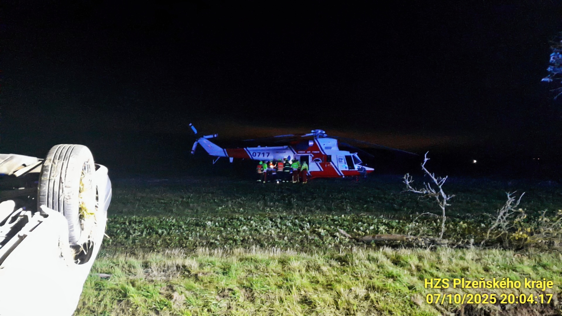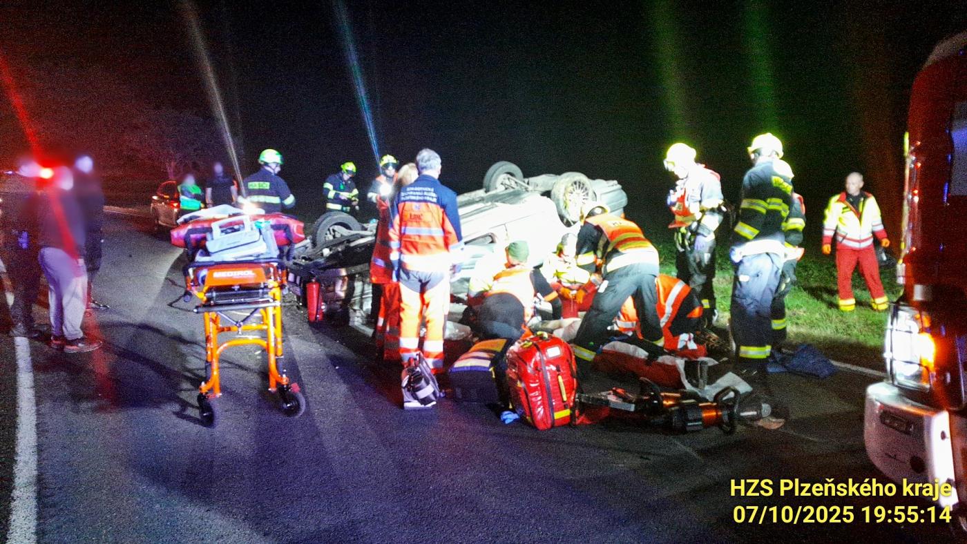 Zraněného řidiče nakonec transportoval do nemocnice vrtulník. "Posádka K07 transportovala muže při vědomí oběhově stabilního se středně těžkými zraněními na urgentní příjem FN Plzeň," doplnila mluvčí letecké záchranné služby Jolana Číhová.