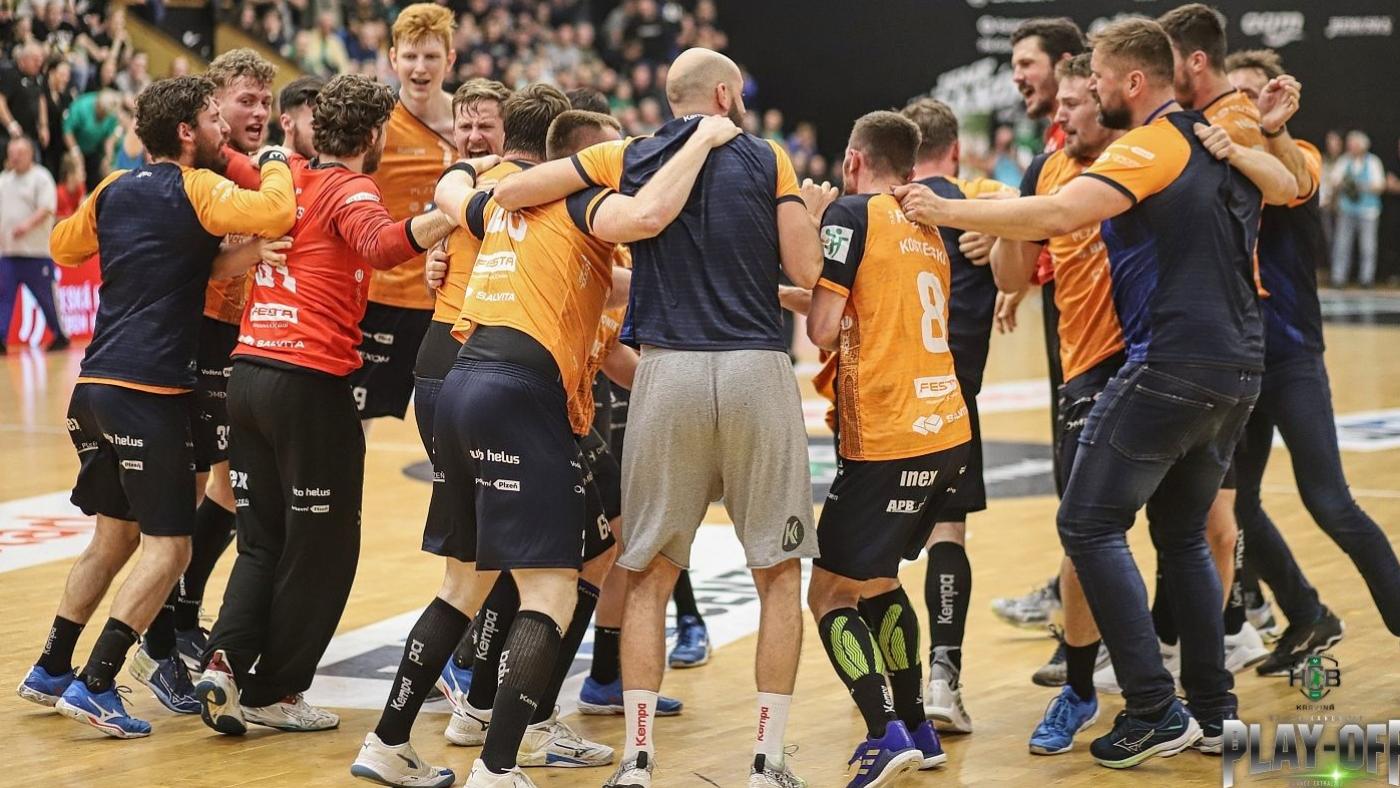 O držiteli mistrovského titulu v házené mužů rozhodně až pátý zápas. Talent tým Plzeňského kraje dokázal i napodruhé odvrátit mečbol Karviné, čtvrtý duel ovládl především díky skvělým závěrečným deseti minutám poměrem 34:29.