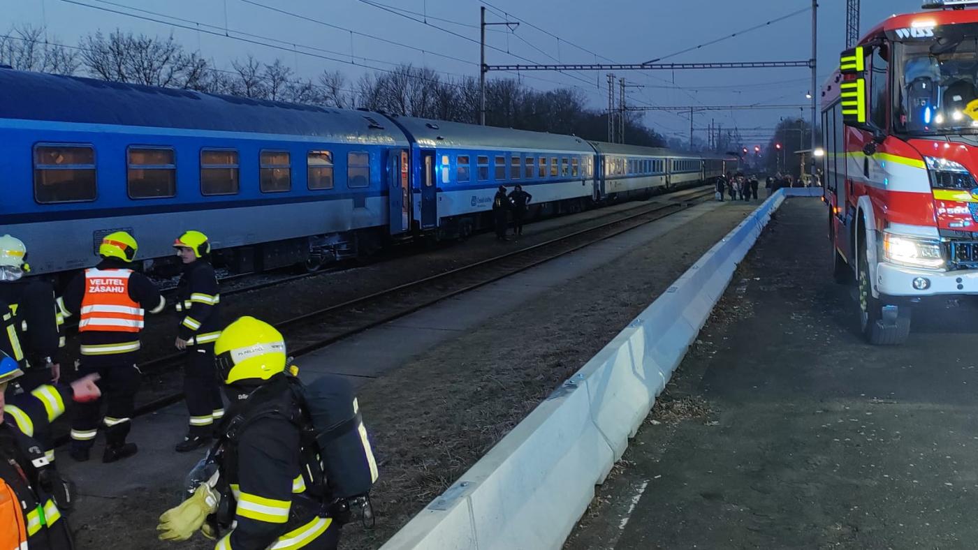 Hasiči vyjížděli k požáru krátce před 6. hodinou ranní. "Všech 25 osob cestujících v soupravě se evakuovalo. Vlakvedoucí se strojvedoucím provedli prvotní hašení přenosnými hasicími přístroji," uvedl mluvčí krajských hasičů Petr Poncar.
