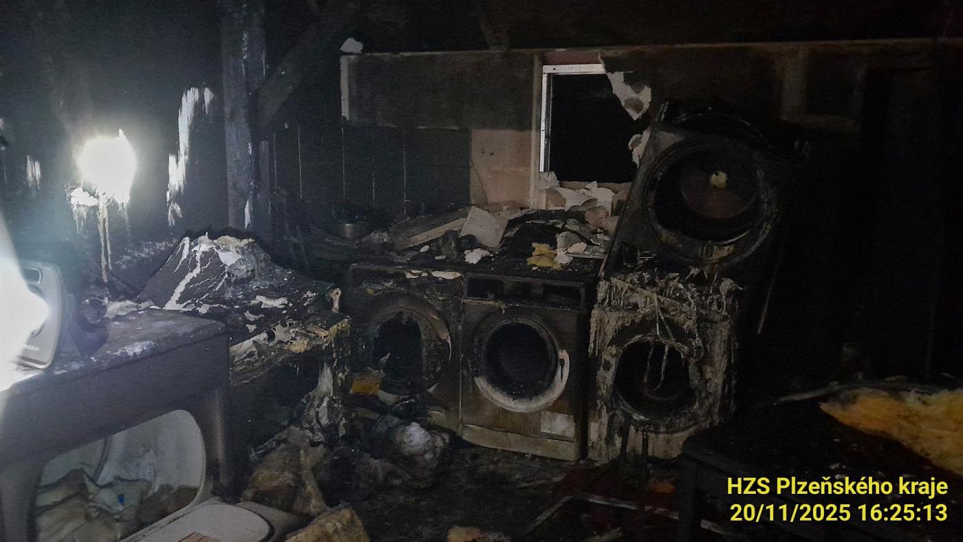 K požáru došlo ve skladu prádla. "Prostory byly zakouřené a pro odvětrání jsme nasadili přetlakovou ventilaci. Z nižších pater hasiči z SDH Černice likvidují odsátím hasební vodu použitou při likvidaci požáru. Po ukončení činnosti vyšetřovatele příčin požáru se budou vyklízet půdní prostory pro zamezení skrytých ohnisek," uvedl Holeček.