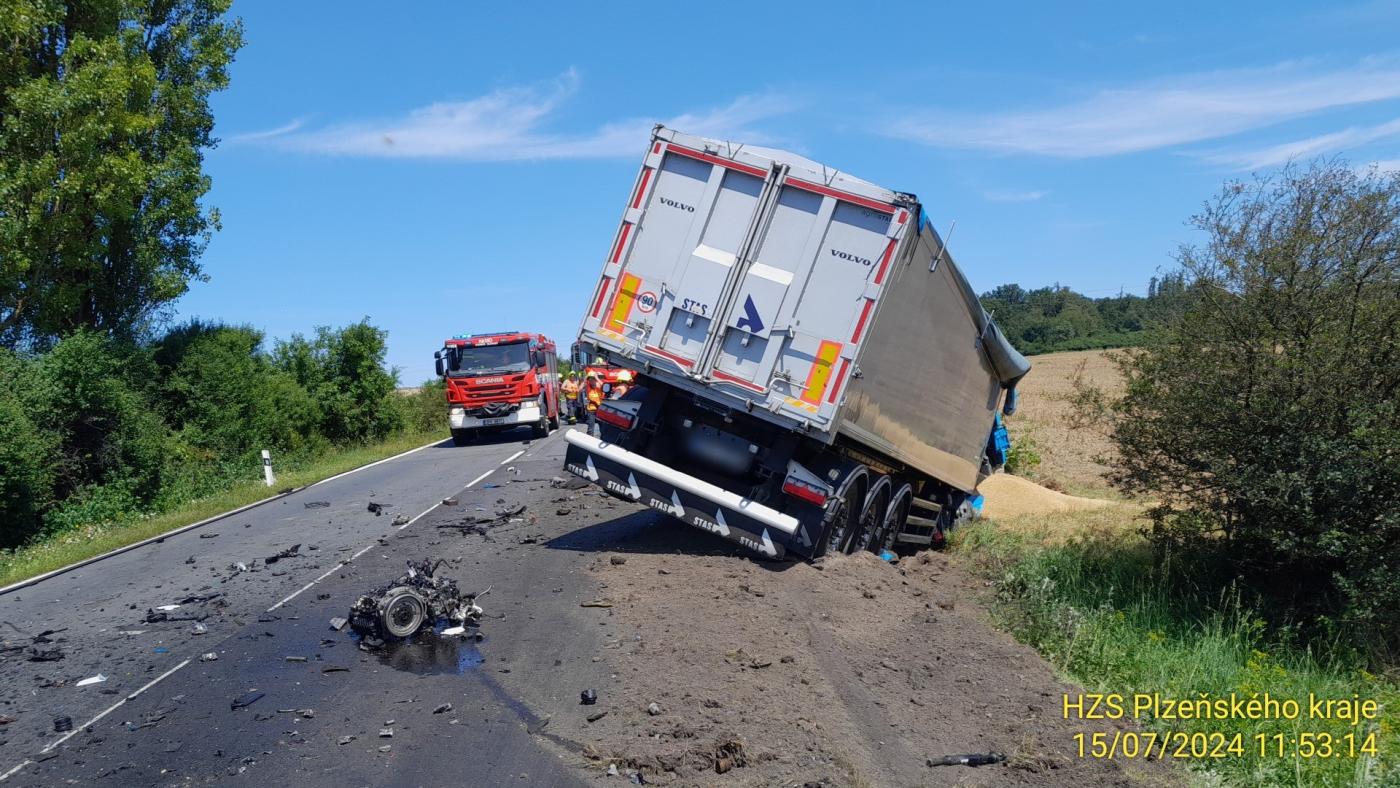 Kvůli nehodě bude komunikace minimálně pět hodin uzavřená. "Jsou stanoveny objízdné trasy. Pro osobní automobily je provoz odkloněn přes obec Chlum a nákladní vozidla jedou přes Drahkov, Letiny na Přeštice," uvedla policejní mluvčí Eva Červenková s tím, že jsou policisté na místě a zjišťují veškeré okolnosti dopravní nehody.